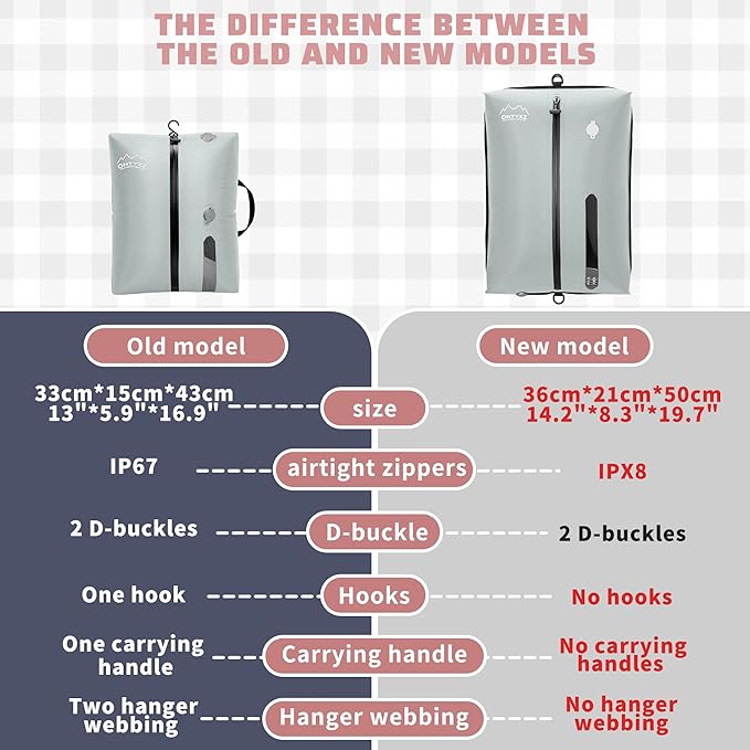 - IPX8 Airtight Zipper: Featuring a premium IPX8 airtight zipper, this bag blocks gas and liquid penetration completely, ensuring your clothes stay dry, clean, and fresh—even in humid or wet environments. For a perfect seal, simply pull the zipper fully closed.