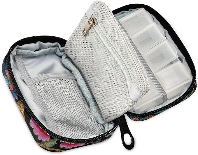 - Cute Pill Box: This pill case bag is made of designed twill fabric with zipper, keep your medications inside the pill box, protect privacy and the pills will not fall out