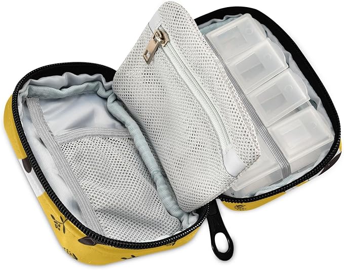 - Cute Pill Box: This pill case bag is made of designed twill fabric with zipper, keep your medications inside the pill box, protect privacy and the pills will not fall out