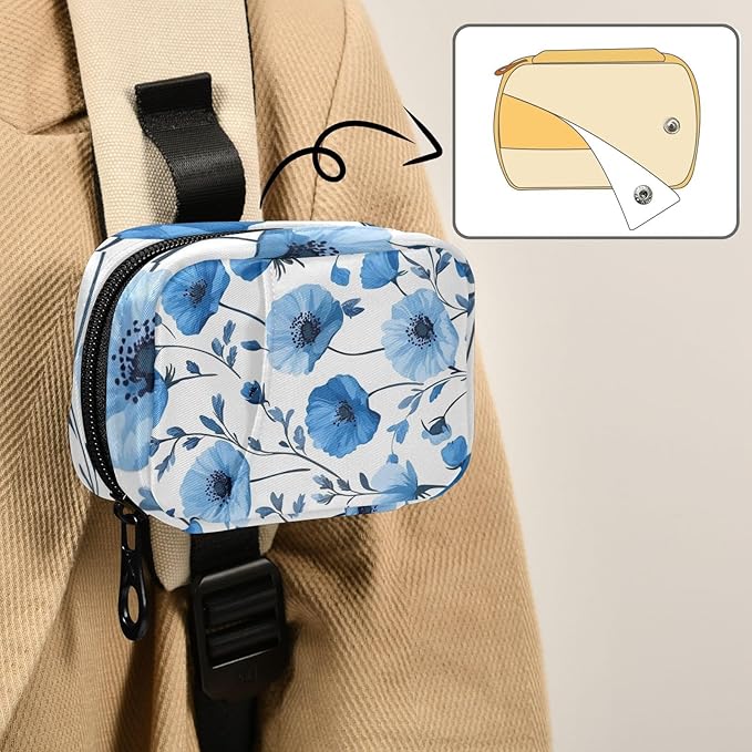 Pill Organizer Box Case Weekly Travel Pill Container Holder 7Day Cute Vitamin Organizer Dispenser Sorter Planner Storage Small Compact Blue Poppy Flowers and Branches03