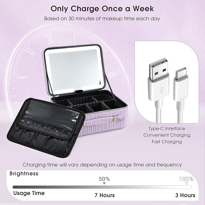 - 【ONLY CHARGE ONCE A WEEK 】- The LED mirror is equipped with a built-in 2000mAh battery, alleviating concerns about battery life during use. Based on an average daily makeup time of 30 minutes, it typically requires charging only once a week. It is important to note that charging duration may vary depending on usage time and frequency.