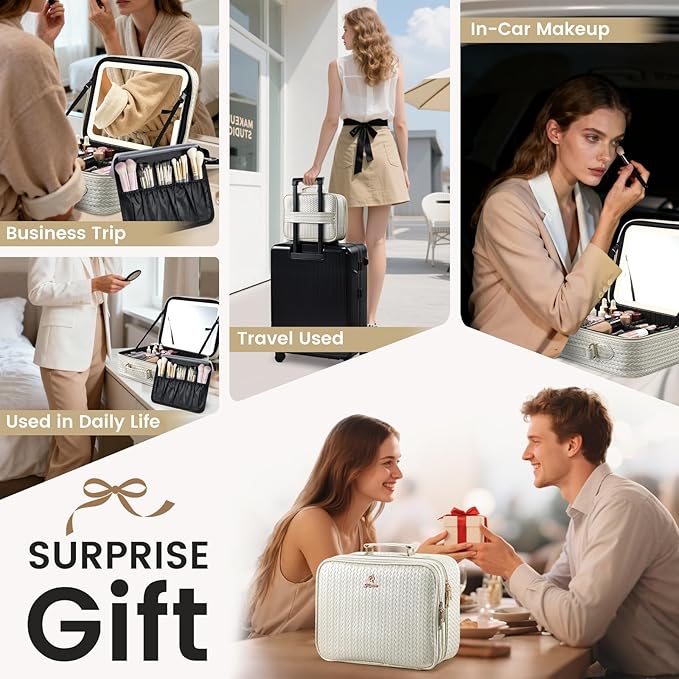 - 【IDEAL CHOICE SURPRISE GIFT 】- This travel makeup case featuring an LED mirror makes an excellent present for various occasions such as birthdays, Mother's Day, Valentine's Day, anniversaries, Halloween, and Christmas. It’s a great choice for moms, wives, teachers, friends, daughters, or even for treating yourself.