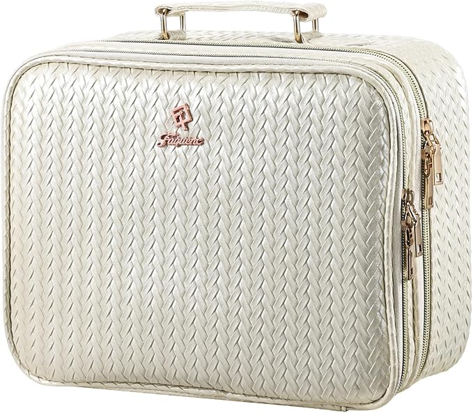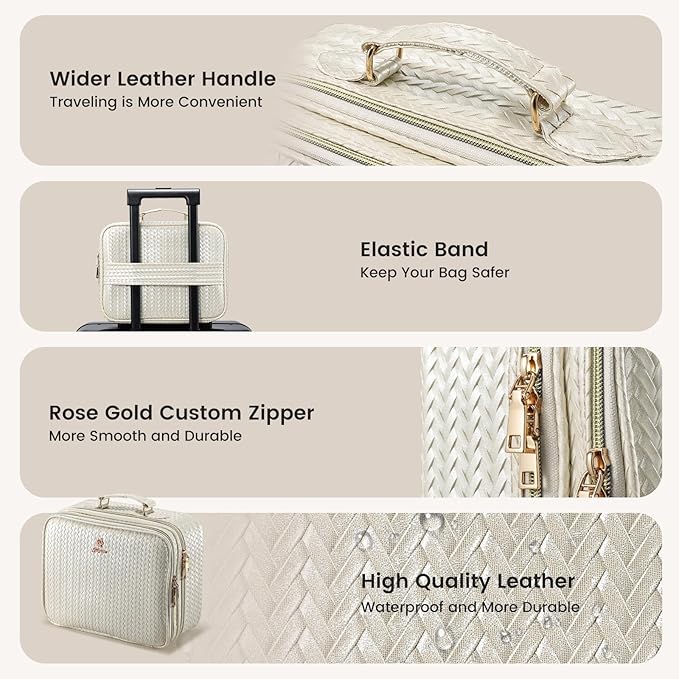 - 【HIGH-QUALITY TRAVEL COSMETIC CASE 】- The Faquenc makeup bag features a stylish beige pattern and a gold double zipper for easy opening. The handle has been upgraded to an ergonomic, rounded design to minimize strain during use. To accommodate travel needs, a luggage elastic strap has been added for convenient carrying. In addition, a Type-C data cable is included for convenient charging on the go.