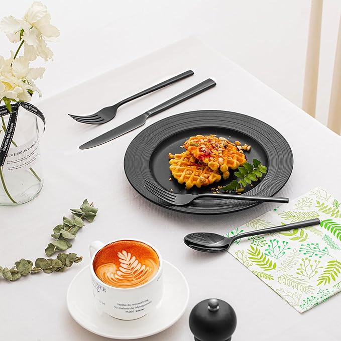 - DESIGN AND APPEARANCE: Mirror finish, natural and elegant design.Smooth and silk surface without grain, easy to clean and care in daily use. Crafted forged process,strong and durable,so that the flatware set has a thicker texture