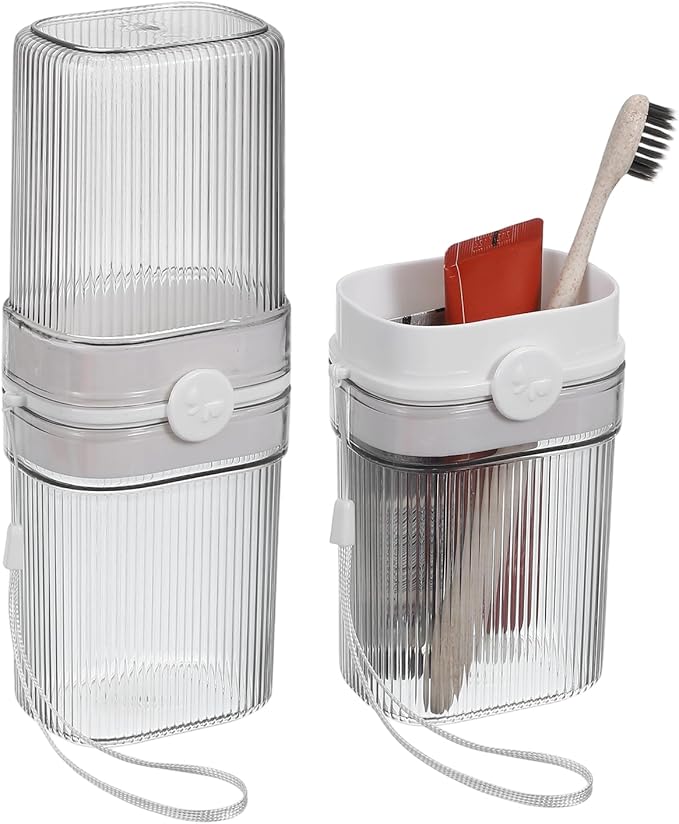 - Portable Design: This travel toothbrush case adopts a two-stage design, with detachable cups that double as mouthwash containers. The cup mouth is round and smooth, and will not scratch the skin or items in the bag, easy to grip and dust-proof
