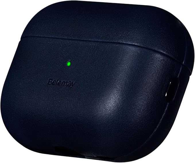 Belemay Handcrafted Full-Grain Vegetable-Tanned Leather Case for AirPods Pro 3rd Gen (2025), Classy Two-Tone Effect, Natural Patina, Compatible with MagSafe, Compatible with Airpods Pro 3, Navy Blue
