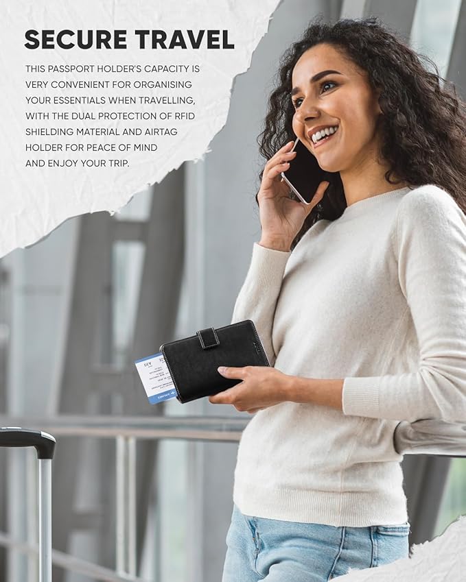 - Passport & Airtag Holder Combo Design- The built-in holder compatible with airtag to locate your passport while travelling. Keep track of your passport book cover wherever you go and never worry about forgetting where you left it.