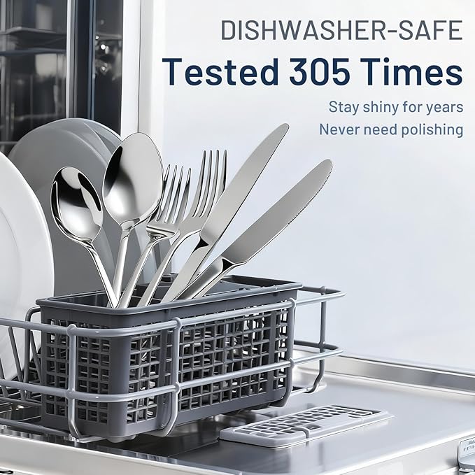 - 【305 CYCLES DISHWASHER SAFE】Our premium forks and spoons set isn’t just "durable"—we proved it with 305 tough dishwasher cycles. It still shines like new, no rust, no dullness. Skip fragile hand-wash sets or rusted replacements. Grab one that keeps up, stays fresh, and makes "long-lasting" real.