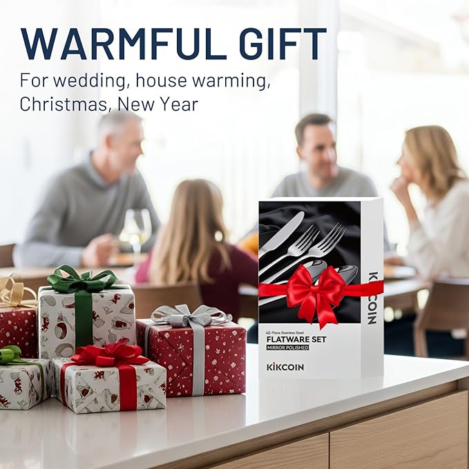 - 【40 PACK FOR 8】This 40-piece stainless steel silverware set—service for 8, including Dinner Knives, Forks, Salad Forks, Spoons, and Teaspoons—comes beautifully packed in a gift box.