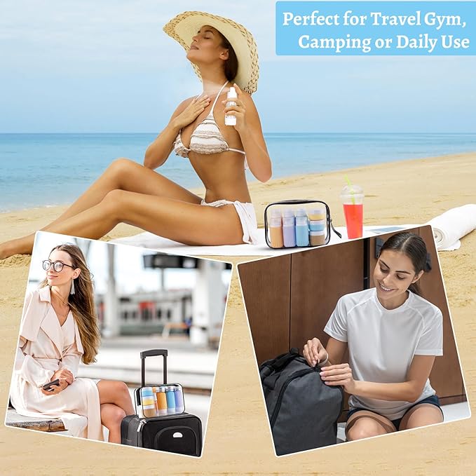 - TSA‑READY & SPACE‑SAVING: All primary pieces meet carry‑on size guidelines and fit into the included clear PVC zip bag, so your tsa approved travel bottles breeze through security. Compact, refillable, and reusable, this set upgrades your packing routine—ideal travel bottles for toiletries for flights, cruises, road trips, gym, or office.