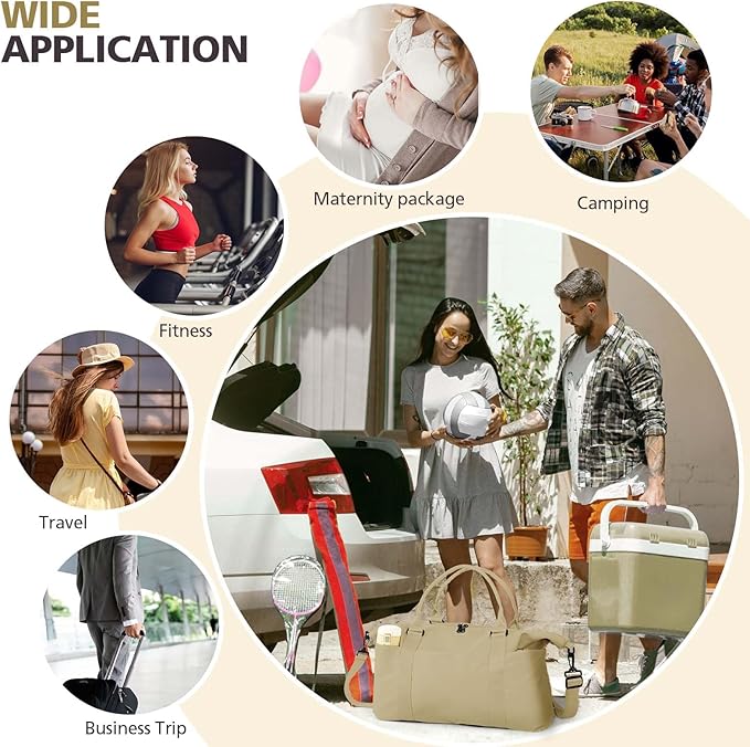 - 【Weekender and Travel Bag】This duffle bag for women is designed to be both fashionable and practical. It can be used as a men's gym sports bag, school luggage bag, travel carry on bag, travel handbag, or gym tote bag, suitable for exercise, travel, sports activities, tennis, basketball, yoga, fishing, hunting, camping, hiking, and many outdoor activities. Choosing our lightweight and portable shoulder bag will kickstart your healthy lifestyle and exciting journeys!