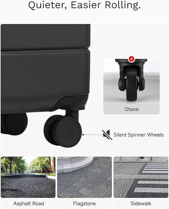 - 360° Silent Spinner Wheels: This travel luggage is fitted with 4 double silent spinner wheels, gliding smoothly on any surface—whether it’s airport tile or cobblestone streets. The 360° rotation lets you navigate narrow spaces (such as crowded terminals or train aisles) easily with one hand. Perfect for long trips that require constant movement, it reduces your stress and frees up your hands.