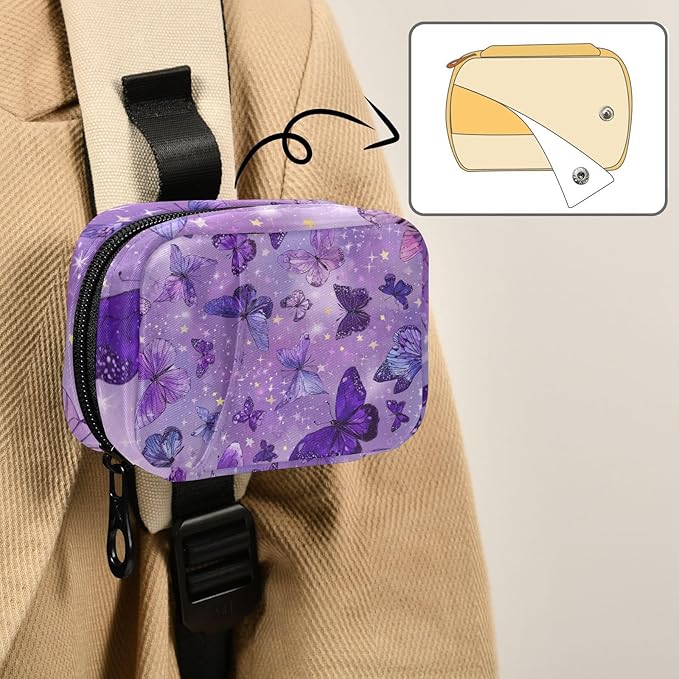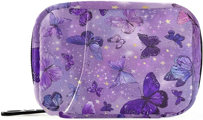 Pink Cute Butterflies and Stars Travel Pill Organizer Case Box Container Weekly Portable Vitamin Medicine Holder Storage Bag with Zipper Removable