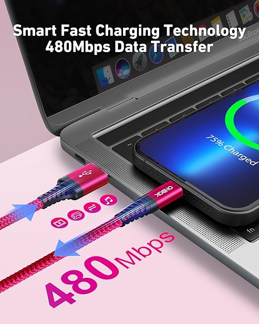 USB C Cable 60W Fast Charging [2 Pack 3FT], USB A to USB C Cable for CarPlay, USB to Type C iPhone Charger Durable Braided USBC Cord for iPhone 17/16/15/Pro Max, Samsung Galaxy S23 and More-Rose Red
