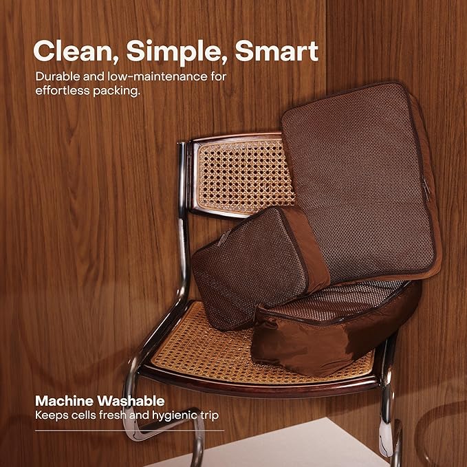 - MACHINE-WASHABLE & STAIN-PROOF - Built to stay fresh, these packing cubes are 100% stain-resistant and machine-washable for easy maintenance. Whether used daily or for long adventures, these packing pouches for travel keep your items hygienic and your suitcase organizer ready for the next journey.