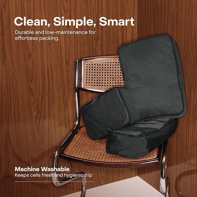 - MACHINE-WASHABLE & STAIN-PROOF - Built to stay fresh, these packing cubes are 100% stain-resistant and machine-washable for easy maintenance. Whether used daily or for long adventures, these packing pouches for travel keep your items hygienic and your suitcase organizer ready for the next journey.