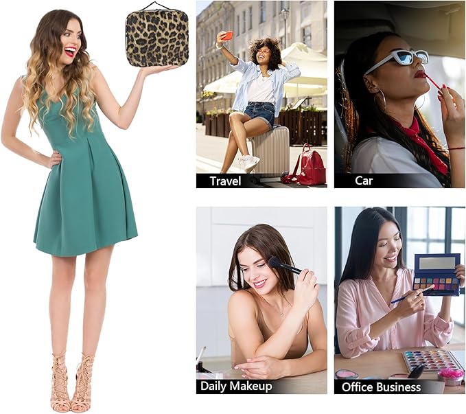 Travel Makeup Bag Makeup Cosmetic Train Case Organizer Portable Storage Bag with Adjustable Dividers for Cosmetics Makeup Brushes Toiletry Jewelry Leopard