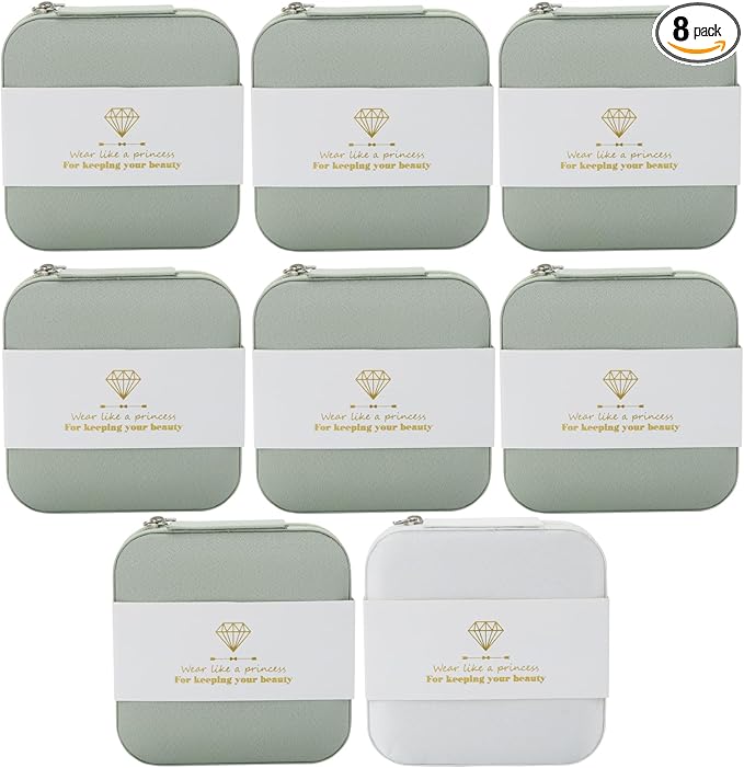 Bridesmaid Proposal Gifts Travel Jewelry Case Jewelry Travel Organizer Small Bachelorette party Jewelry Box Bridesmaid Gift Boxes Mini Storage Organizer Storage Box (8, Fabric White&Sage Green)