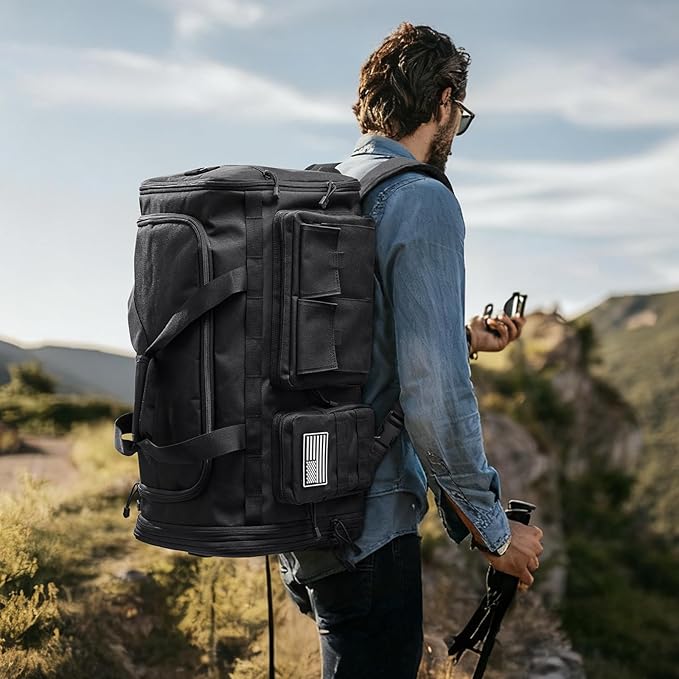 - Tactical Duffle Bag: Equipped with the MOLLE webbing to attach extra gear you need. The Velcro designs for personalized customization (including one flag patch). The military duffle bag for men meets the greatest demands of outdoor explorers, military enthusiasts, and fashion trendsetters for travel bags.