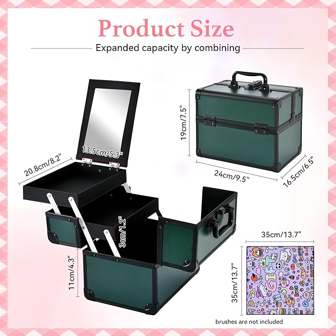 - 【Practical Bonus】This makeup case comes with a highly practical magic makeup pouch, perfect for storing makeup brushes and other cosmetics. Using it alongside the main case helps maximize space efficiency.