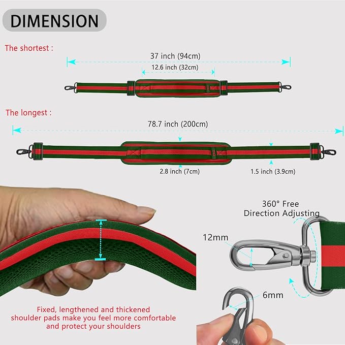 - 5. DUAL BALANCED BUCKLE: Double balanced clasps, let shoulder force more even, MAKE BAGS FEEL 50% LIGHTER; With non-slip design, the DUAL CLASPS ARE STABLE and will not change the length of the shoulder strap on its own due to the weight change of the bag.
