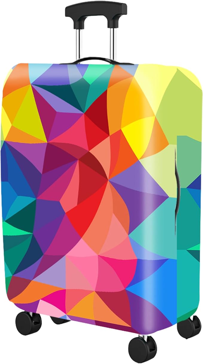 - PREMIUM QUALITY – Crafted from high-grade stretchable polyester-spandex blend, this luggage cover Rainbow Geometric Small doubles as a suitcase protector against scratches, dust, stains, and scuffs. Unlike flimsy alternatives, it offers long-lasting luggage protection and durability. This travel luggage sleeve ensures your suitcase remains in pristine condition on every journey.