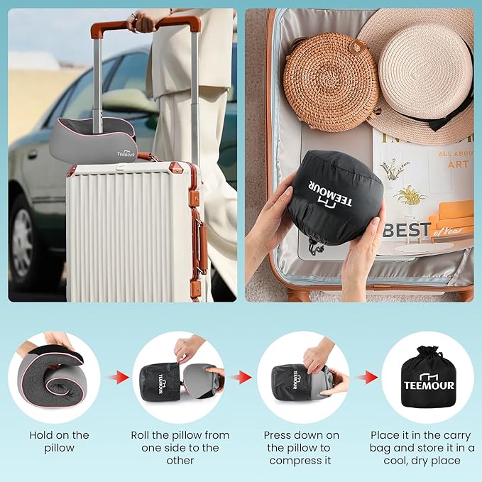 - 𝐆𝐑𝐄𝐀𝐓 𝐆𝐈𝐅𝐓 𝐈𝐃𝐄𝐀--The Teemour neck support pillow is a perfect travel gift for Christmas, White elephents, men, women, mom, dad, anyone who need neck support. The neck pillow for traveling is superior comfort which makes it a practical present for friends, family, or colleagues who appreciate quality travel.