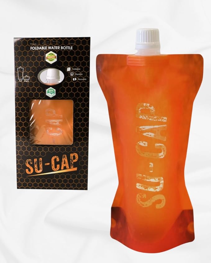 - Space-Saving Travel Water Bottle – Lightweight and foldable, SUCAP works as the ultimate travel water bottle and camping essential. When empty, it folds flat; when full, it stands upright for easy storage and convenience on-the-go.