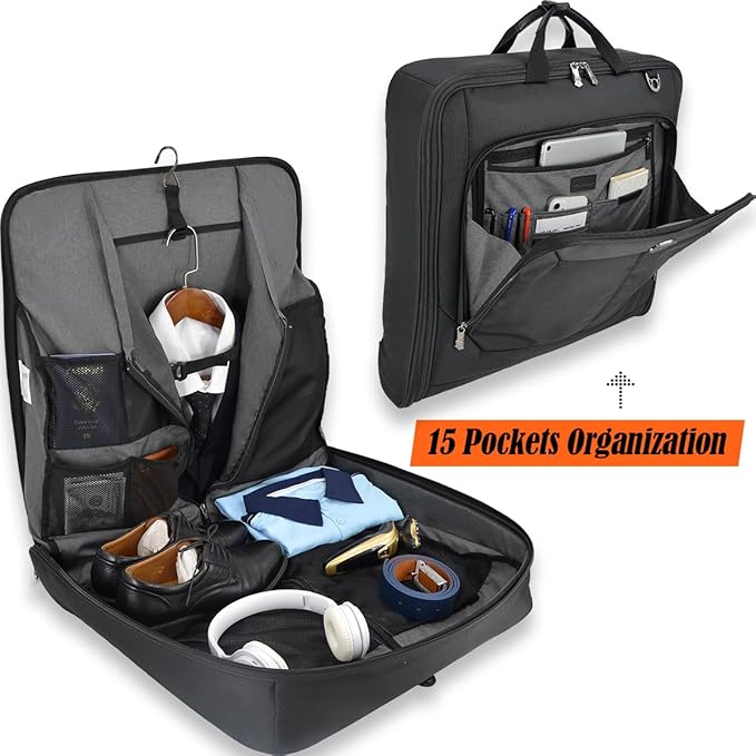 - Smart Organization: The suit bags for men travel 15 easy-access pockets. 7 visual pockets for ties/socks, padded laptop compartment(15.6"). Plus travel packing cubes - perfect for business travel.
