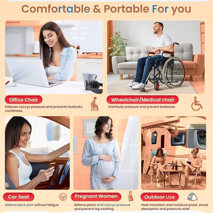 - Water-Resistant and Anti-Slip: Made of durable TPU material, the cushion is water-resistant and easy to clean. Its anti-slip, textured bottom ensures stable placement even on wet or uneven surfaces.