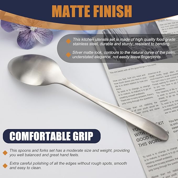 - 【Matte Finish】The matte cutlery set elegant high quality matte polish, smooth and no rough edges. Simple yet classic, appealing to the eye.