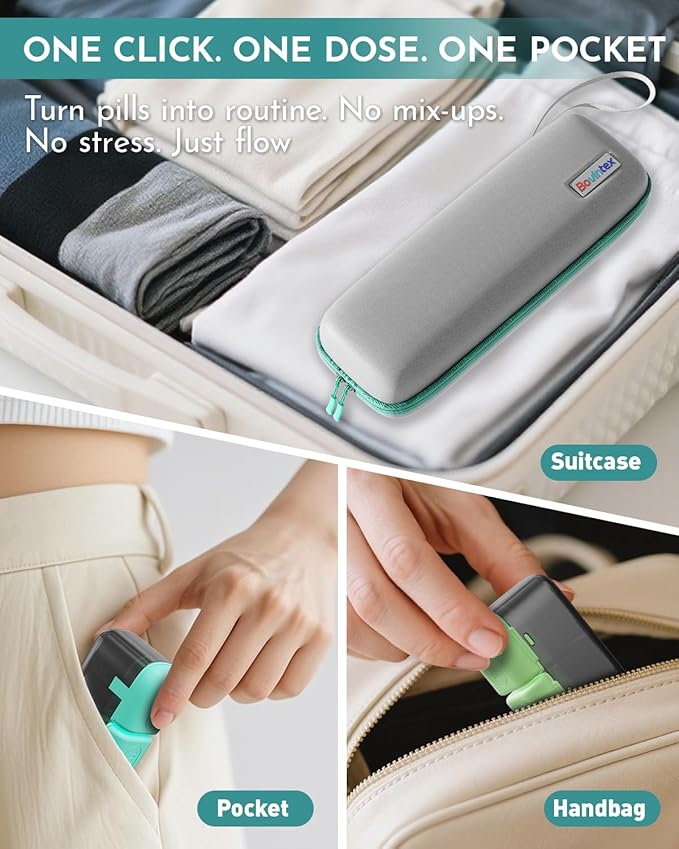 - Stylish Enough for Gifts – Looks More Like a Lifestyle Item: With its sleek capsule shape and calming color options, this purse pill organizer blends into your life—not your medicine cabinet. A thoughtful wellness gift for parents, college students, friends starting new routines, or anyone embracing better self-care