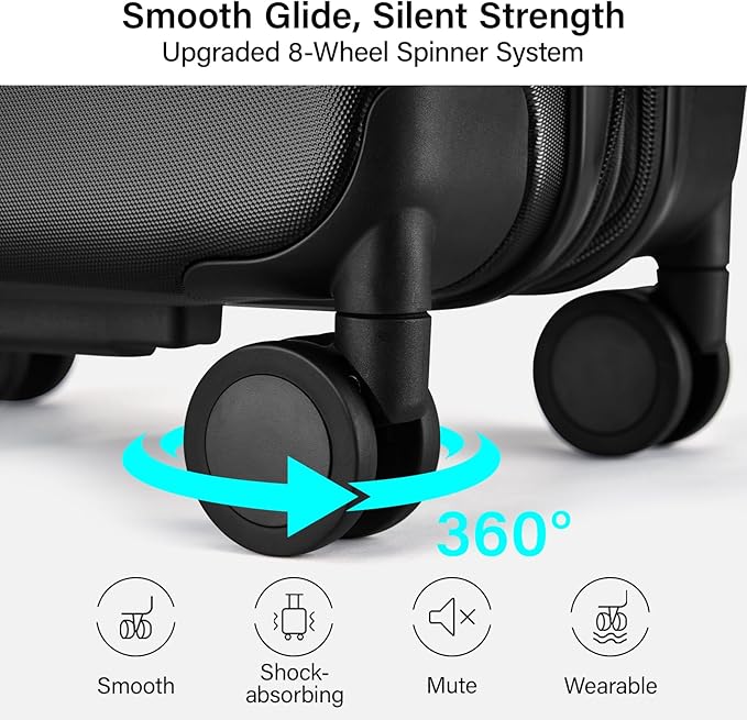 - Smooth Wheels & Reinforced Zippers: The 24 inch luggage with spinner wheels glides effortlessly with precision 360° rotation and thickened TPE skin, performing quietly even on cobblestones or carpets. Reinforced 5-strand explosion-proof zippers ensure smooth closure and prevent bursting under load
