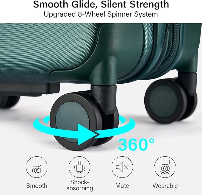 - Smooth Wheels & Reinforced Zippers: The 26 inch luggage with spinner wheels glides effortlessly with precision 360° rotation and thickened TPE skin, performing quietly even on cobblestones or carpets. Reinforced 5-strand explosion-proof zippers ensure smooth closure and prevent bursting under load