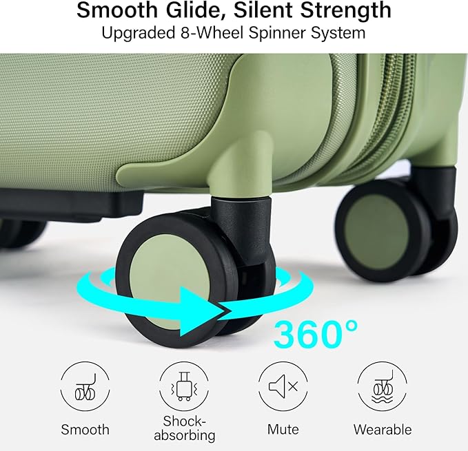 - Smooth Wheels & Reinforced Zippers: The 24 inch luggage with spinner wheels glides effortlessly with precision 360° rotation and thickened TPE skin, performing quietly even on cobblestones or carpets. Reinforced 5-strand explosion-proof zippers ensure smooth closure and prevent bursting under load