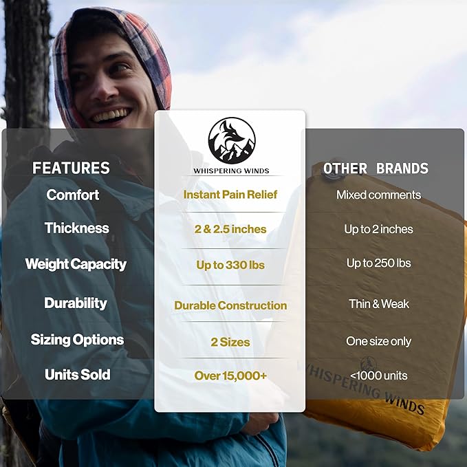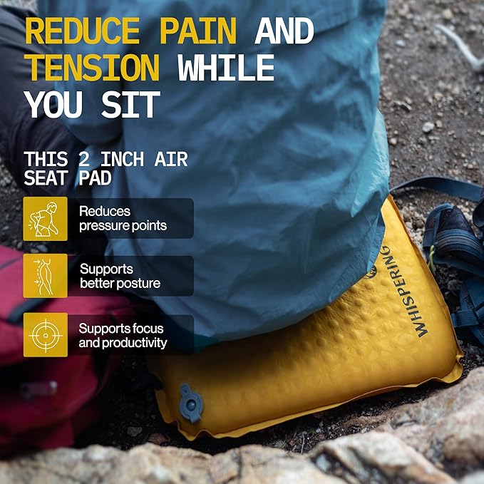 - QUICK & EASY SETUP: The camping seat pad self-inflates and can be manually inflated with just a few breaths to adjust the firmness, allowing you to find the perfect setting that feels just right. One cushion that adapts to meet all your needs.