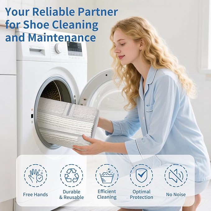 - EFFICIENT CLEANING: The shoe washing bag contains over 30,000 upgraded, extended cleaning fibers. These long, flexible fibers finger provide 360-degree comprehensive care and cleaning for your shoes. Simply place them in the washing machine, and you can enjoy hands-free cleaning while getting a brand-new pair of shoes. The shoe laundry bag features a side mesh compartment for shoe insoles, enhancing both the thoroughness and convenience of the cleaning process.
