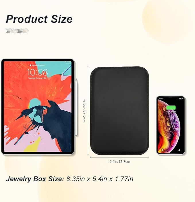 - ② 【Perfect for Travel & Daily Use】 Compact size (8.35" x 5.4" x 1.86") fits easily in handbags, suitcases, or backpacks. Ideal for travel, vacations, business trips, or home storage – ensuring your jewelry stays organized on the go.