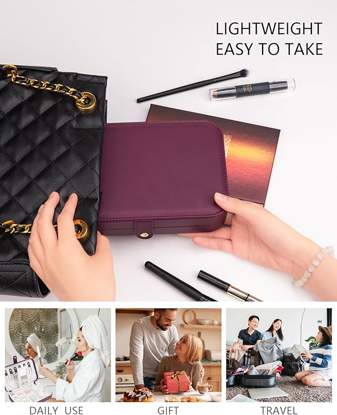 - ② 【Perfect for Travel & Daily Use】 Compact size (8.35" x 5.4" x 1.86") fits easily in handbags, suitcases, or backpacks. Ideal for travel, vacations, business trips, or home storage – ensuring your jewelry stays organized on the go.
