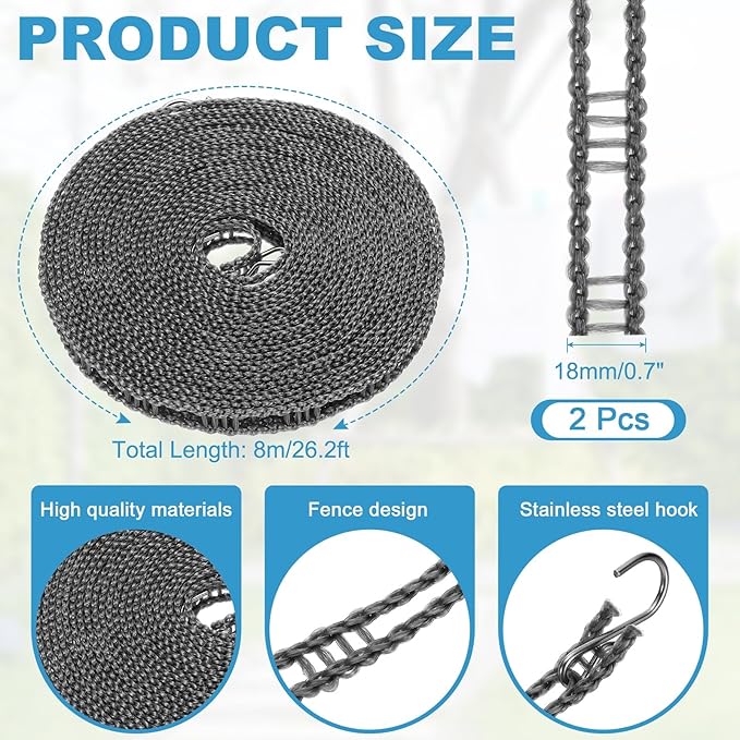 - Package & Size: You will receive 2 pieces of travel clotheslines with 4 pieces of hooks, the width is 18mm/0.7 inch, and the length is 8m/26.2ft, which is good for outdoors and indoors.