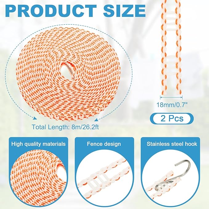 - Package & Size: You will receive 2 pieces of travel clotheslines with 4 pieces of hooks, the width is 18mm/0.7 inch, and the length is 8m/26.2ft, which is good for outdoors and indoors.