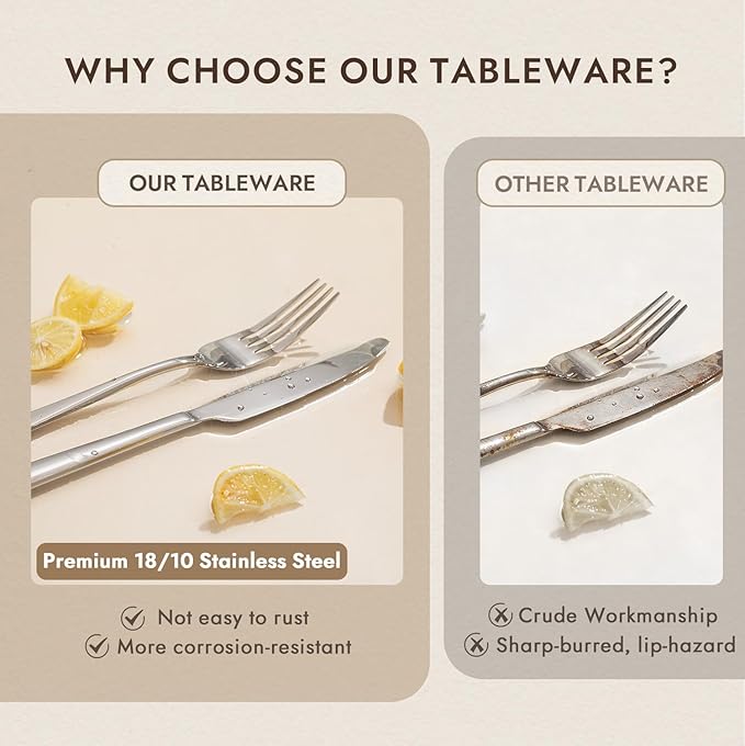 - Suitable for various occasion: whether everyday family meals or special celebrations like Thanksgiving, Christmas, or weddings—this versatile tableware set fits perfectly. Its understated yet elegant design makes it a thoughtful gift for housewarmings, weddings, or holidays, helping your loved ones create beautiful memories around the table with cutlery made to last and styled to impress