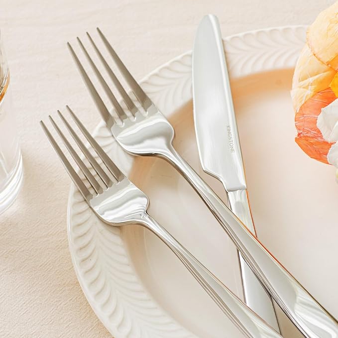 - Exceptional texture, comfortable grip: Each piece features a beautifully polished mirror finish that catches the light and elevates your table setting. The ergonomic design offers a secure, comfortable hold that fits naturally in hand—making it easy to use. Its timeless style blends seamlessly with a variety of dinnerware, from classic white plates to contemporary designs