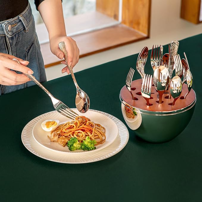 - Durability and Safety: This Cutlery Set Is Made Of High-Quality 18/10 Food-Grade Stainless Steel Material, Are Not Only Elegant In Design But Also Durable. Its Sturdiness Ensures That It Will Not Bend Easily ,You Can Long Term Use. Easy To Clean. Provide A Happy Dining Experience For You And Your Guests