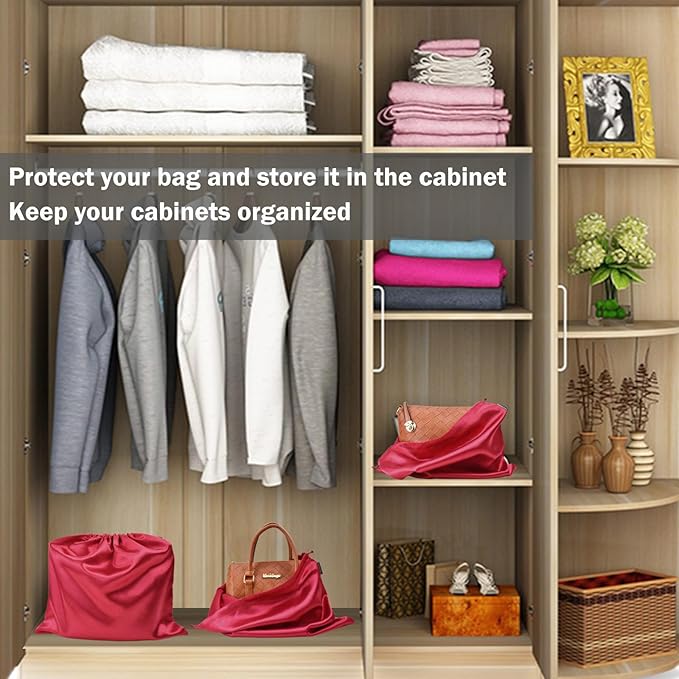 GONGKANGYUAN 6 Pack Dust Bags for Handbags – Silk Drawstring Storage Pouch, Dustproof Travel Organizer for Purses, Shoes & Boots