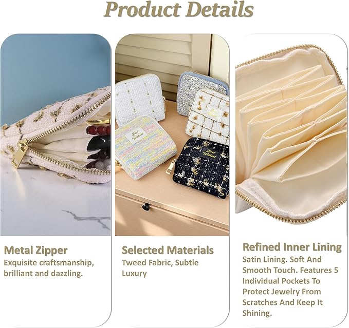 - ๐ Refined Exterior ร Satin Interior โโ The exterior is made of tweed, available in a variety of colors and design styles; the interior is lined with smooth satin, which feels soft and skin-friendly, while providing full protection for your jewelry against scratches and damage.