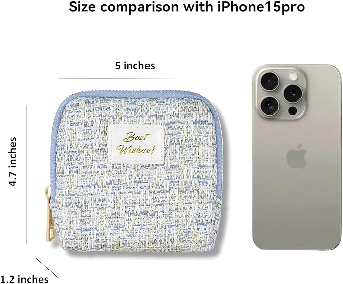 Small Travel Jewelry Case, Soft Tweed Organizer Pouch for Bangle, Bracelets, large Earrings, Beaded necklace, Anti-Scratch & Portable Jewelry Bag Holder for Travel & Everyday Use (Icy Blue Tweed)