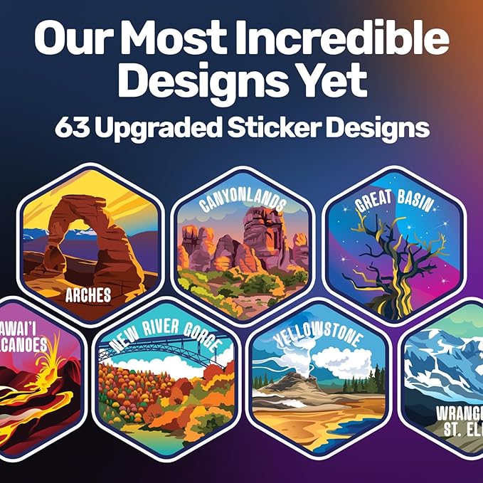 - NEW UNMATCHED, UNBEATABLE STICKER DESIGNS: Each of the 63 stickers have been painstakingly re-designed by hand over the course of 12 months exclusively for the National Parks Ultimate Bundle.