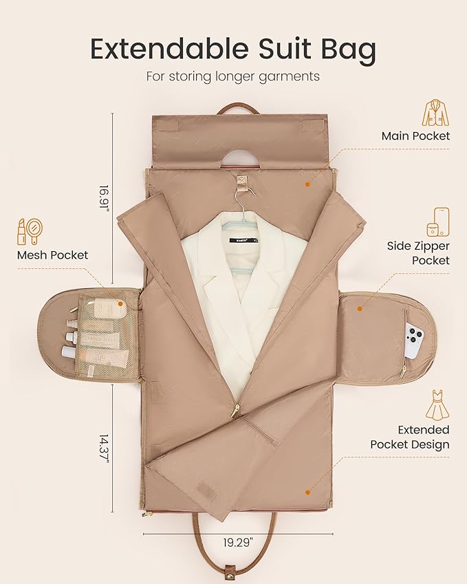 - 【Convenient Front Pocket Organization】Featuring a dedicated front compartment, this garment bag allows easy access to essentials like chargers, power banks, passports, and important documents. Keep your frequently used items organized and within reach at all times.