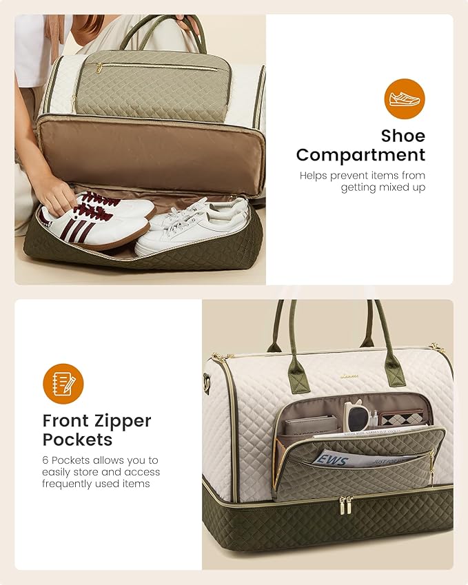 - 【Versatile Carry Options & Durable】Constructed with high-density, water-resistant materials, this weekender bag for women includes a detachable shoulder strap for various carrying styles, offering both durability and security for all your belongings.